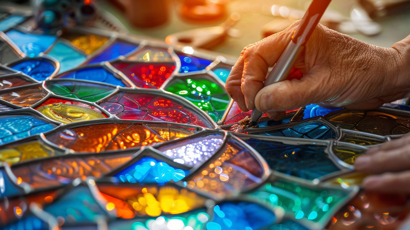 - Des médaillons inspirés du vitrail illustrant la diversité des métiers