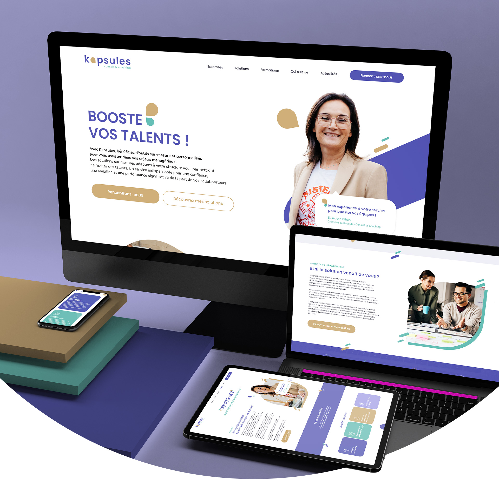 Avec une bonne dose de créativité et quelques litres de thé ☕, j’ai redonné à Kapsules Conseil & Coaching un look plus moderne et plus énergique… bref une identité qui ressemble à Elisabeth 😎
